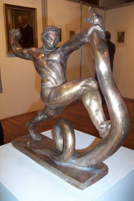Rumi Rajki István (1881-1941) a XX. század első felének egyik legjelentősebb magyar szobrásza. Müncheni és párizsi tanulóévek után Stróbl Alajosnál képezte tovább magát, majd Szombathelyen illetve Budapesten próbált boldogulni. Háborús emlékművek, kisebb-nagyobb egyedi szobrok, egyházművészeti és épületszobrászi munkák kerültek ki keze alól. Munkásságára a modern formai irányzatok közül a kubizmus volt jelentős hatással. Küzdelmes élete utolsó éveinek eredménye két legkiválóbb műve: a Szent Márton megkereszteli édesanyját (amely Szombathelyen áll) és a New York-i világkiállításra készült Szent István-szobor